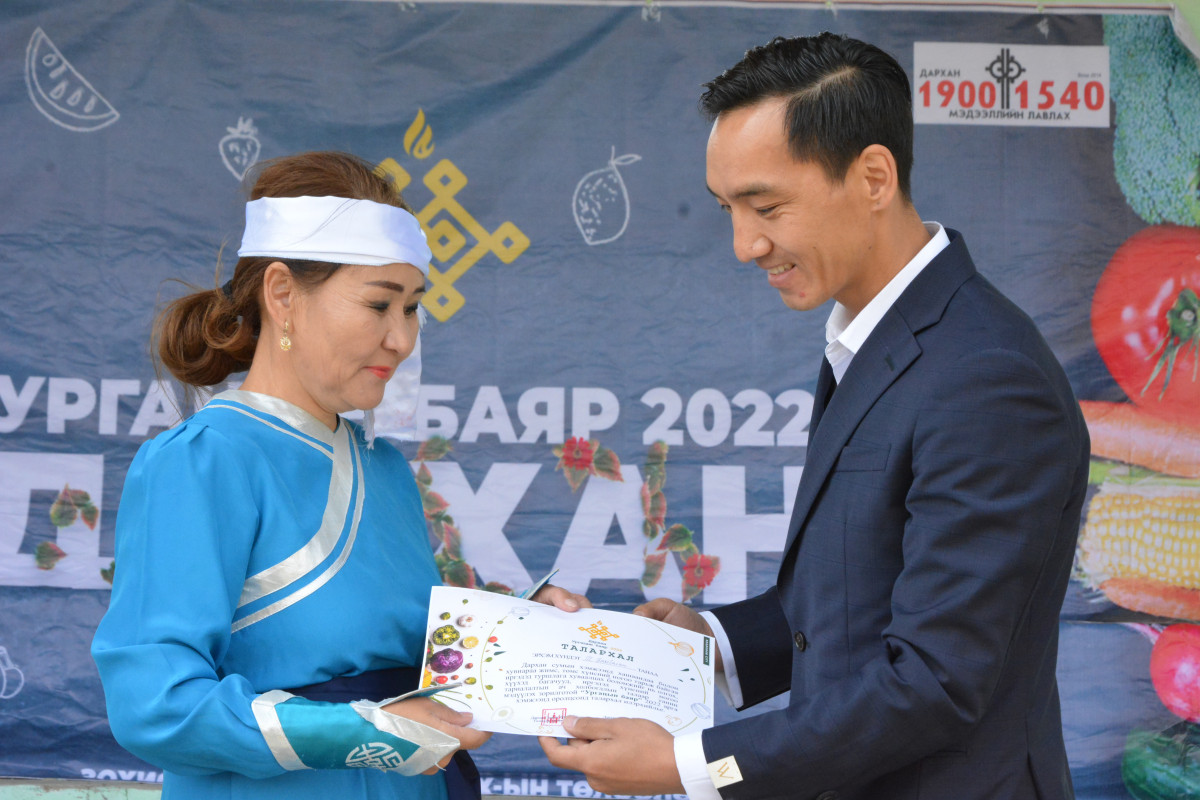 Ургацын баярт Дархан суманд өрхийн хэмжээнд ногоо тариалдаг иргэд оролцож өөр өөрсдийн хашаандаа тарьж ургуулсан хүнсний ногоо, жимс жимсгэнээ танилцууллаа.