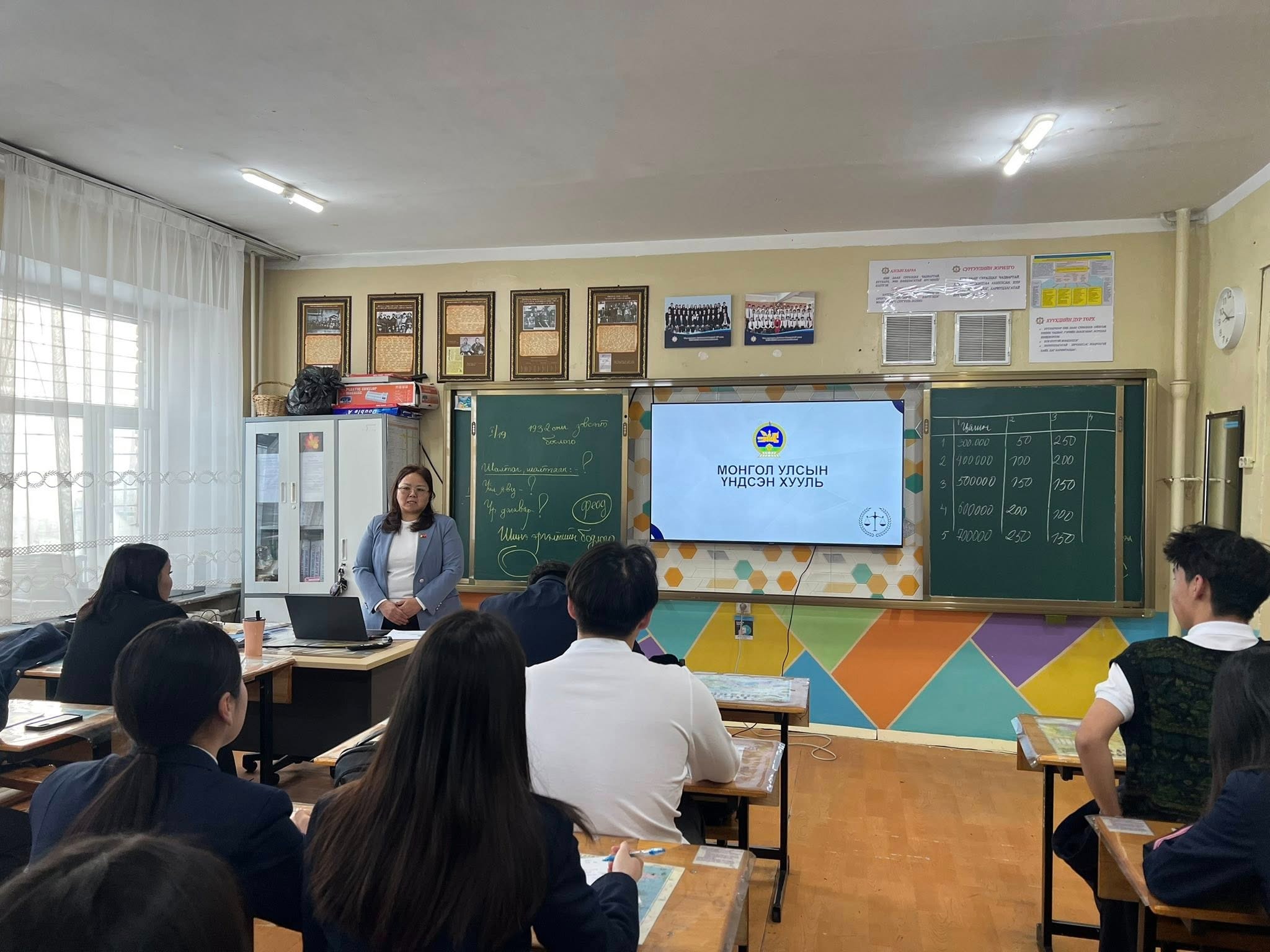 Тус сургалтын үеэр Монгол Улсын Үндсэн хуулийн ач холбогдол, түүхэн хөгжил, иргэний эрх, үүрэг, хууль дээдлэх зарчим болон төрийн байгууллын үндсэн ойлголтуудын талаар мэдээлэл өгч, сурагчдын сонирхсон асуултад хариулт өгсөн юм.